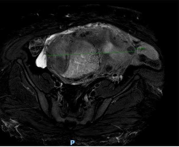 在机器人系统的辅助下,为该患者完整切除了巨大子宫及双侧附件,由于患者骨盆狭窄且会阴区脂肪堆积明显,阴道暴露困难,无法经阴道取出标本。李大鹏主任团队通过术中自制取物袋,将巨大肿瘤完整置入取物袋内取出,全过程严格遵循无瘤原则,最大程度减少了腹壁创伤。