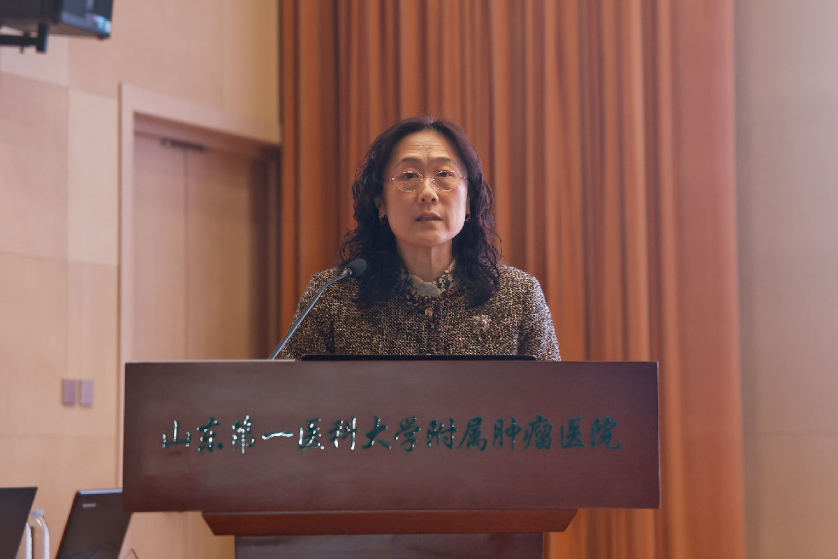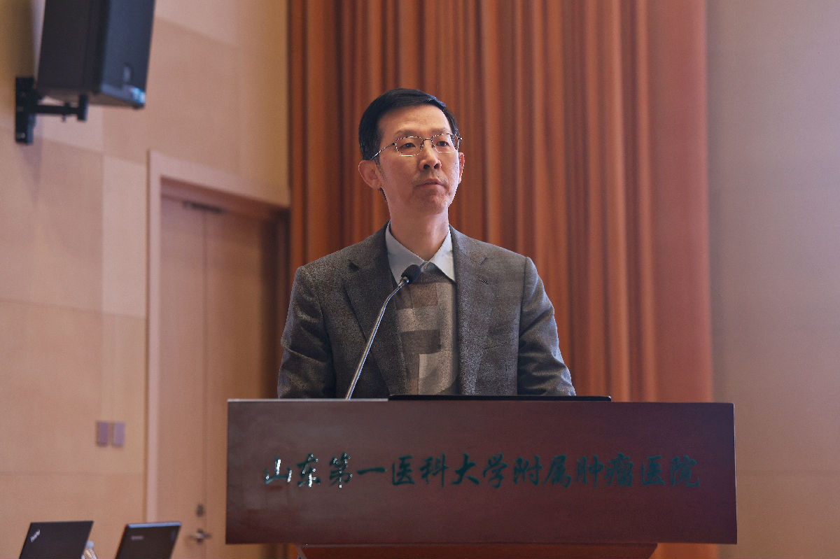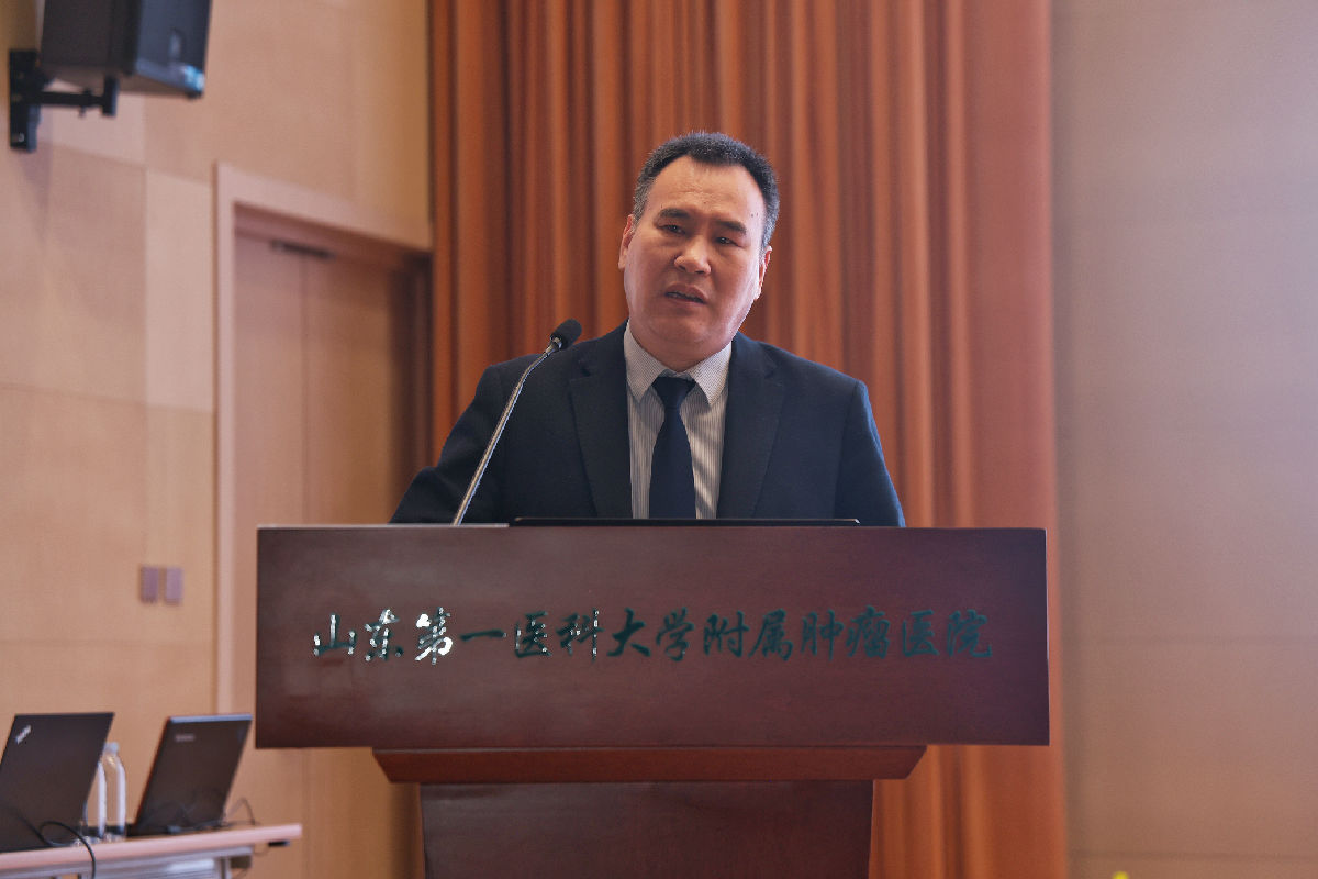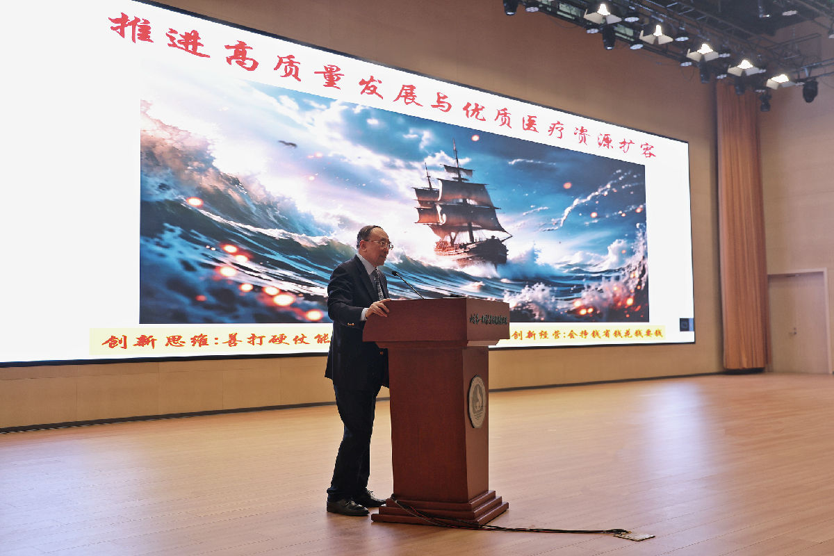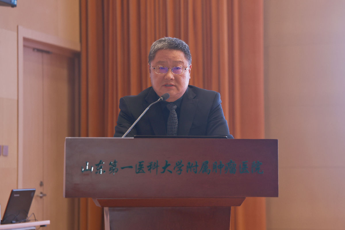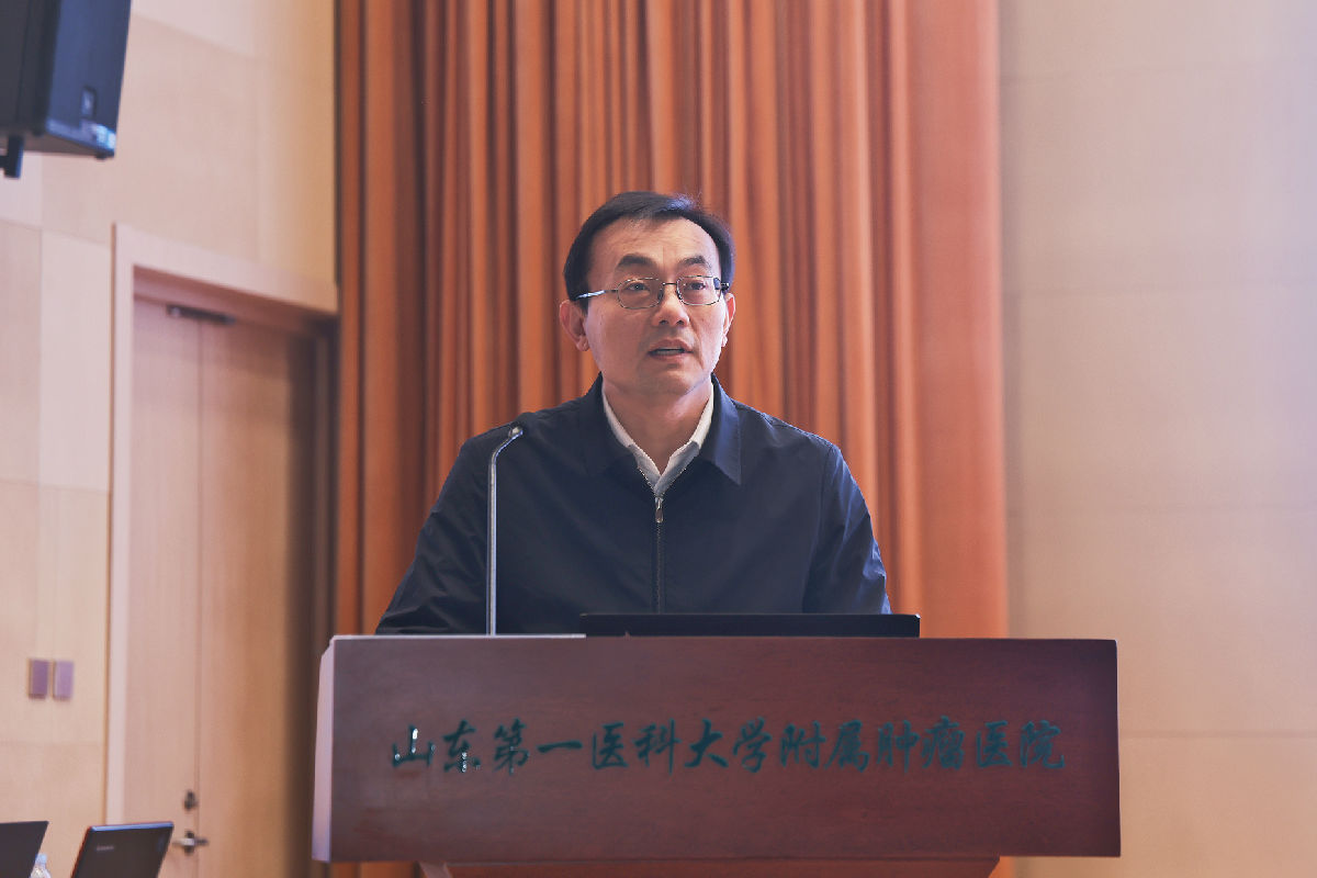 中国工程院院士、我院院长于金明汇报了2025年我院取得的重要成绩。于金明院长指出,在当前严峻的医疗环境下,全院干部职工通过不懈奋斗,2025年医院全部业务指标实现罕见高基数上的正增长,在党建引领、规范诊疗、学科建设、临床教学、人才引培、行风建设等方面取得了丰硕成果。质子和光子单日治疗人数达到全球双第一,2025年CSCO学术年会在济南召开,是历届规模和规格最高的年会,各项成绩被人民日报、山东卫视、大众日报等主流媒体广泛报道,山肿社会影响力和知名度得到不断提升。他强调,成绩的取得不是终点,新的一年要继续发扬艰苦奋斗、改革创新的精神,要做到不服输、不放弃、不躺平、不抱怨,不断坚持优质医疗资源扩容,力争取得新的更高成绩。