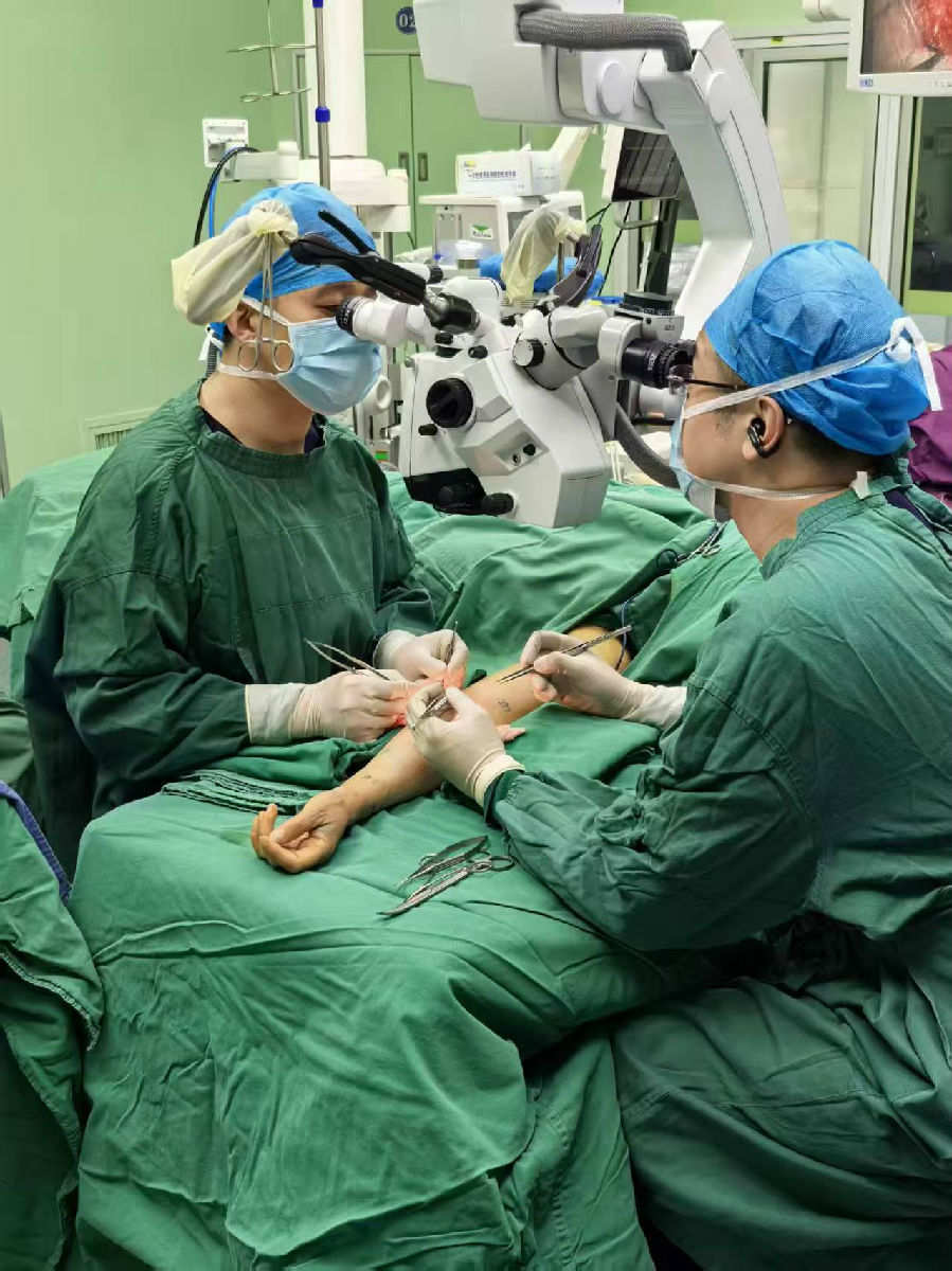 这项手术对操作精度、团队配合度要求极高——手术医师需使用比头发更细的缝线,在高倍镜下完成毫米级的精细操作;术中还需借助吲哚菁绿荧光淋巴造影技术,动态追踪淋巴液流动轨迹,为血管吻合提供精准导航。