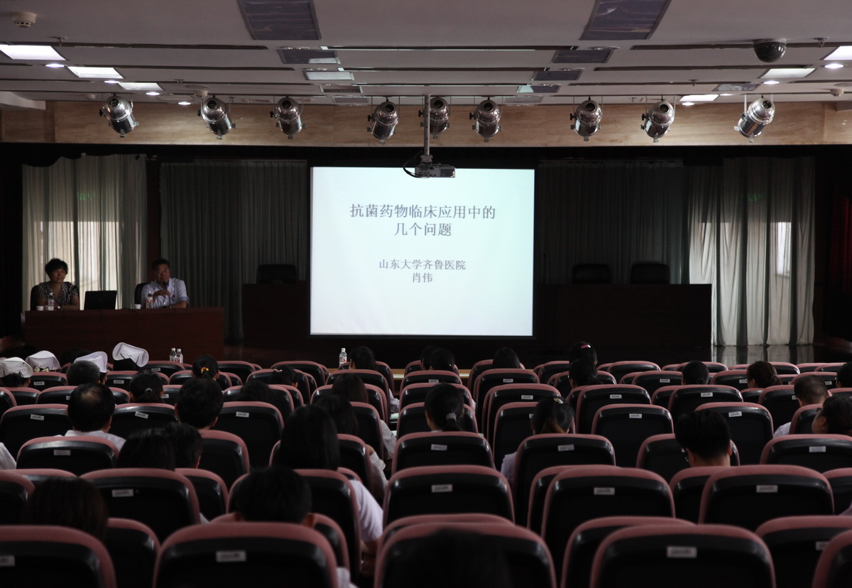 8月14日下午,我院举行了“抗菌药物临床合理应用”专题讲座,我院副院长李宝生主持讲座。山东大学齐鲁医院药学部周文教授、呼吸科肖伟教授在四楼礼堂进行了授课,全院两百多名临床医技科室医务人员、药师参加了此次培训。